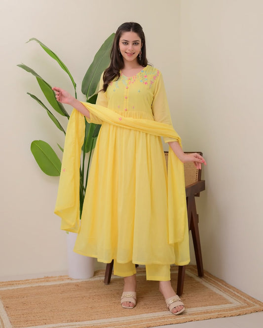 BEAUTIFUL COTTON A LINE KURTI PANT WITH DUPATTA SET
