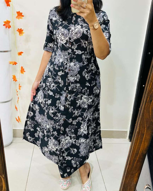 Model Code TK-KSP-BLACK Fabric Cotton 60*60 Sleeve Length Three-Quarter Sleeves Neck Collar neck Ornamentation Printed, Floral...