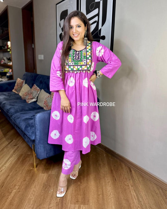 Premium Pure bandhej cotton with a embroidery detailing on neck