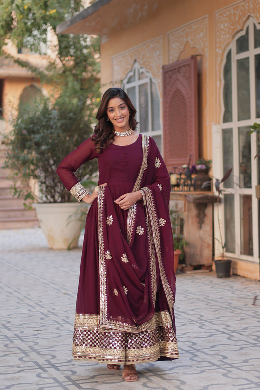 Upgrade your wardrobe with our Premium Designer Readymade Zari Gown. Made with high-quality faux blooming...