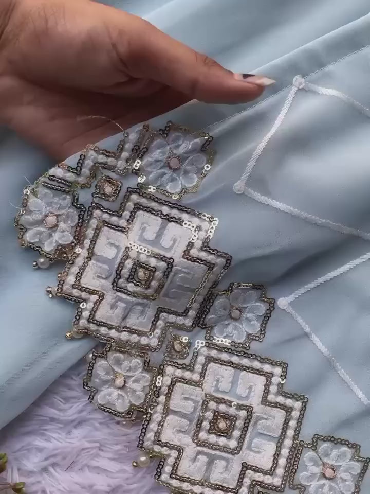 The soothing pastel blue shade adds charm and sophistication, making it perfect for Eid, parties, receptions, and festive celebrations.