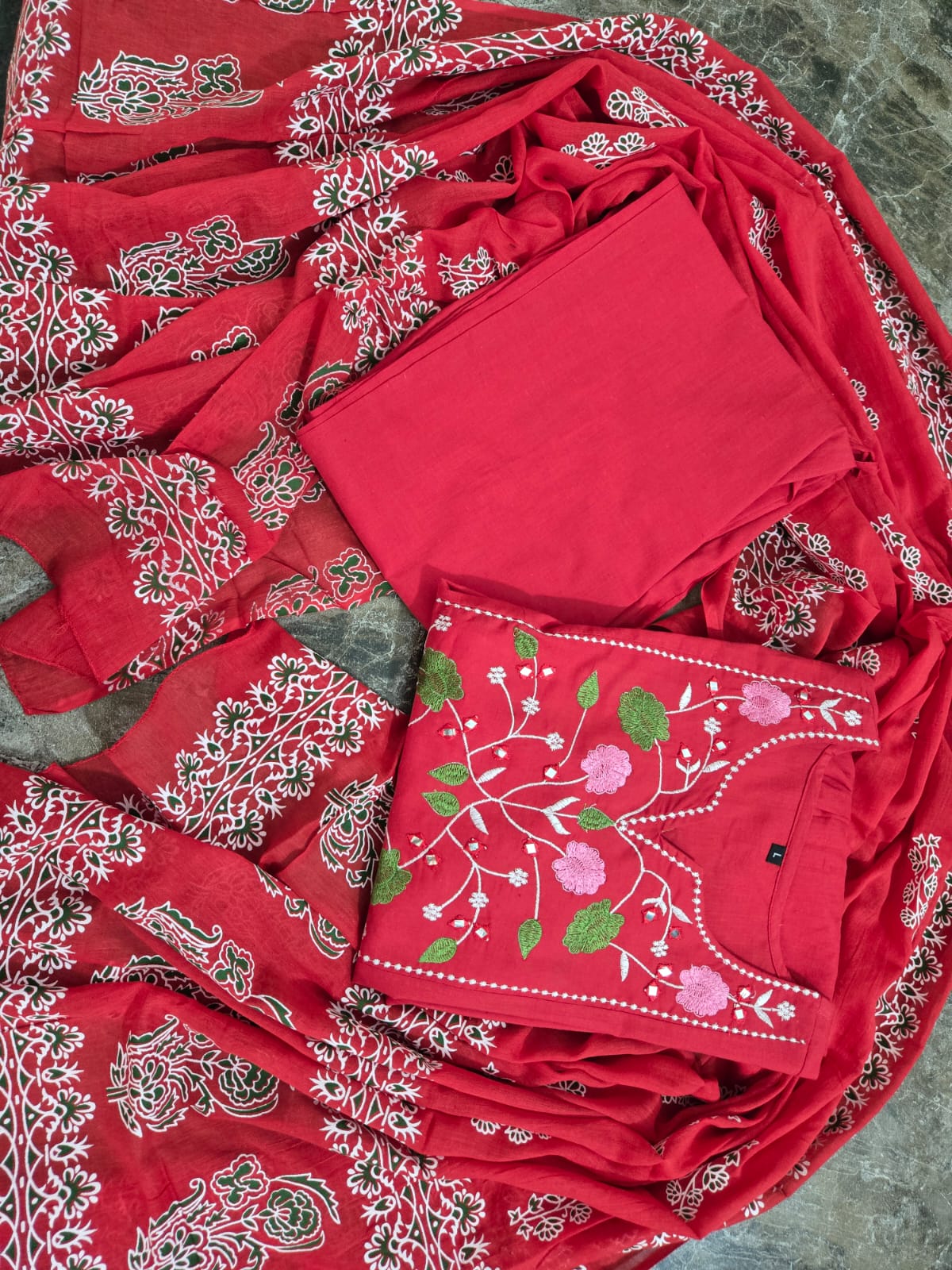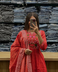 Red Beautiful Anarkali Kurti With Embroidery With Dupatta