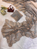 Elevate your wardrobe with this exquisite handwork designer saree, meticulously crafted with intricate detailing. The stunning color palette follows current fashion trends while maintaining timeless appeal. Each stitch represents superior artisanship, ensuring you stand out at special occasions. Perfect for those who appreciate authentic craftsmanship and contemporary style. Like a million stars in the sublime sky, delicately handcrafted katdana work brings out the vibrancy of this space silk saree.