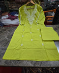 Beautiful Green Cotton Kurta Pant Set