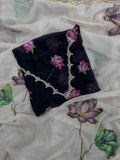 WORK : Beautiful floral print with beads and katdana handwork in border