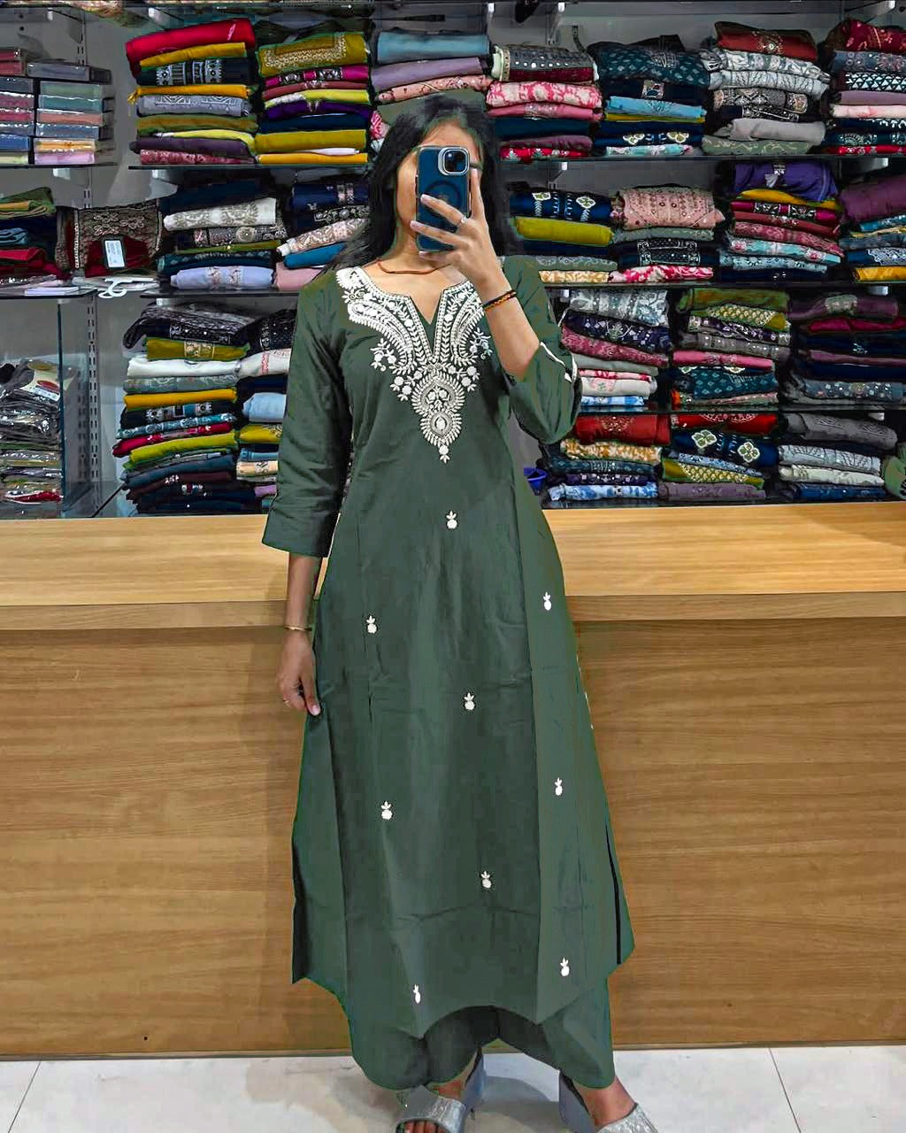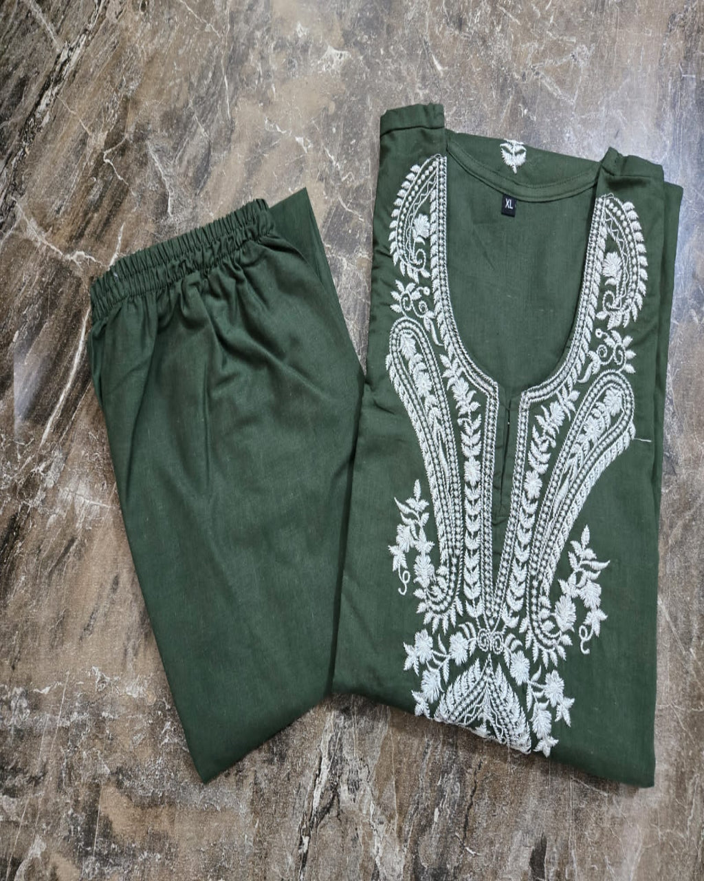 Elevate your wardrobe with this sophisticated bandage and discharge print Cotton 60'60 Kurta Pant Set. The long slit design adds a contemporary touch to traditional aesthetics, while the premium cotton fabric ensures breathability and comfort throughout the day. Perfect for both casual outings and semi-formal occasions, this ensemble combines style and functionality seamlessly.