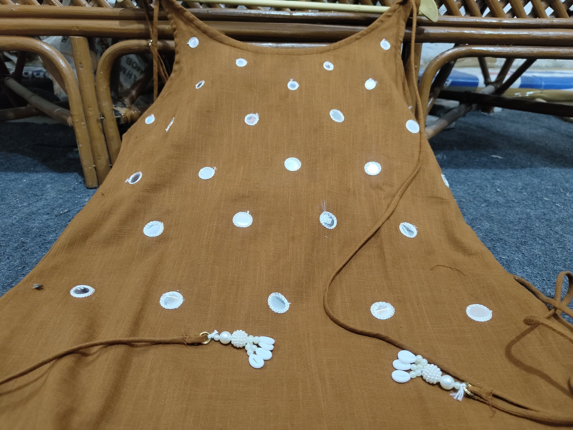 | Ornamentation | Heavy Aari mirror work |