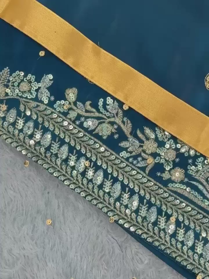 This elegant outfit features a rich silk fabric kurta pant adorned with intricate floral embroidery and zari work, paired with a stylish blouse and a matching dupatta.