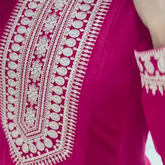 Crafted from premium flowy fabric, this outfit features beautiful embroidery on neckline, sleeves & hemline, giving it a rich and classy look.