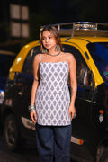 Structure: Typically, the kurti has a deep back or keyhole cut, with detachable ties or loops weaving horizontally and closing in the center.