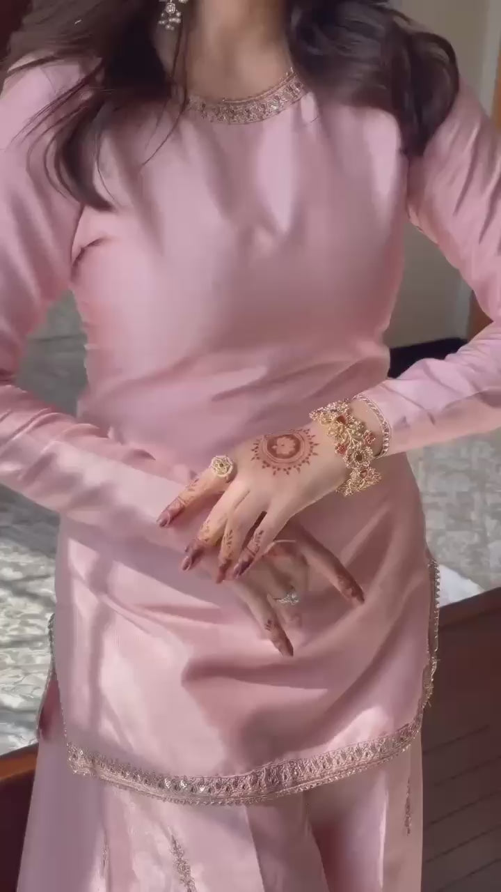 Elegant Blush Pink Silk Kurta Set with Embroidered Dupatta – Festive & Wedding Wear Pakistani Suit for Women