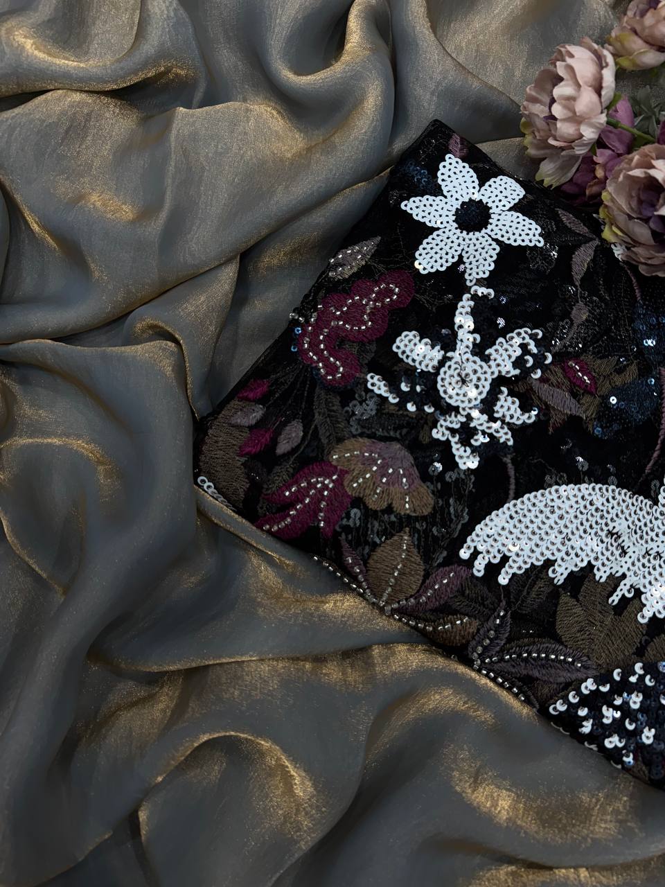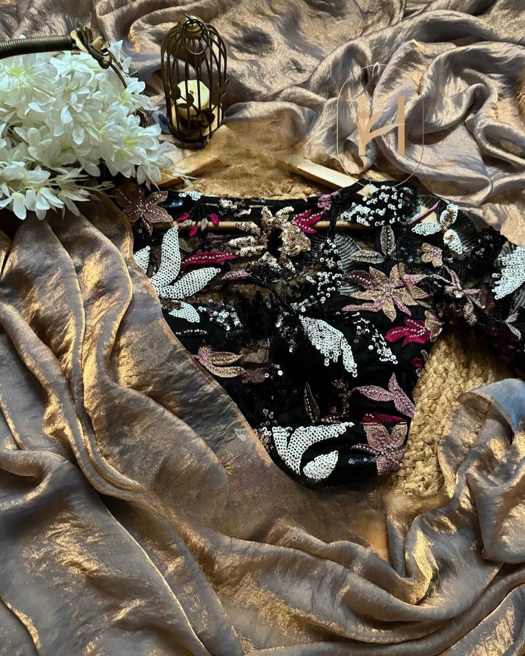 BLOUSE: Beautiful 4 Sequins with Katdana and multiple threads work ( 0.80mtr UNSTITCH)*