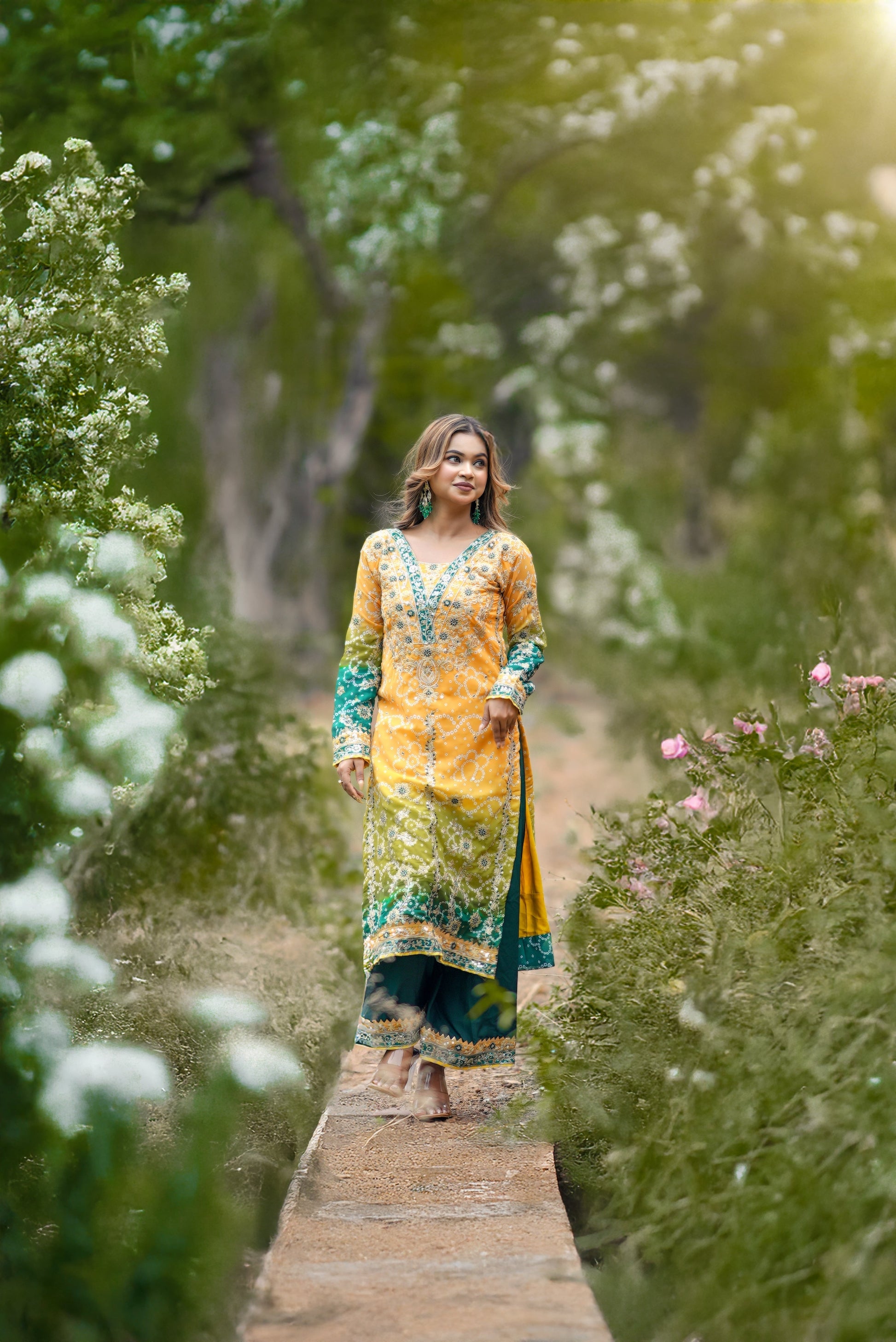 Faux Georgette embroidery work kurta palazzo with dupatta set