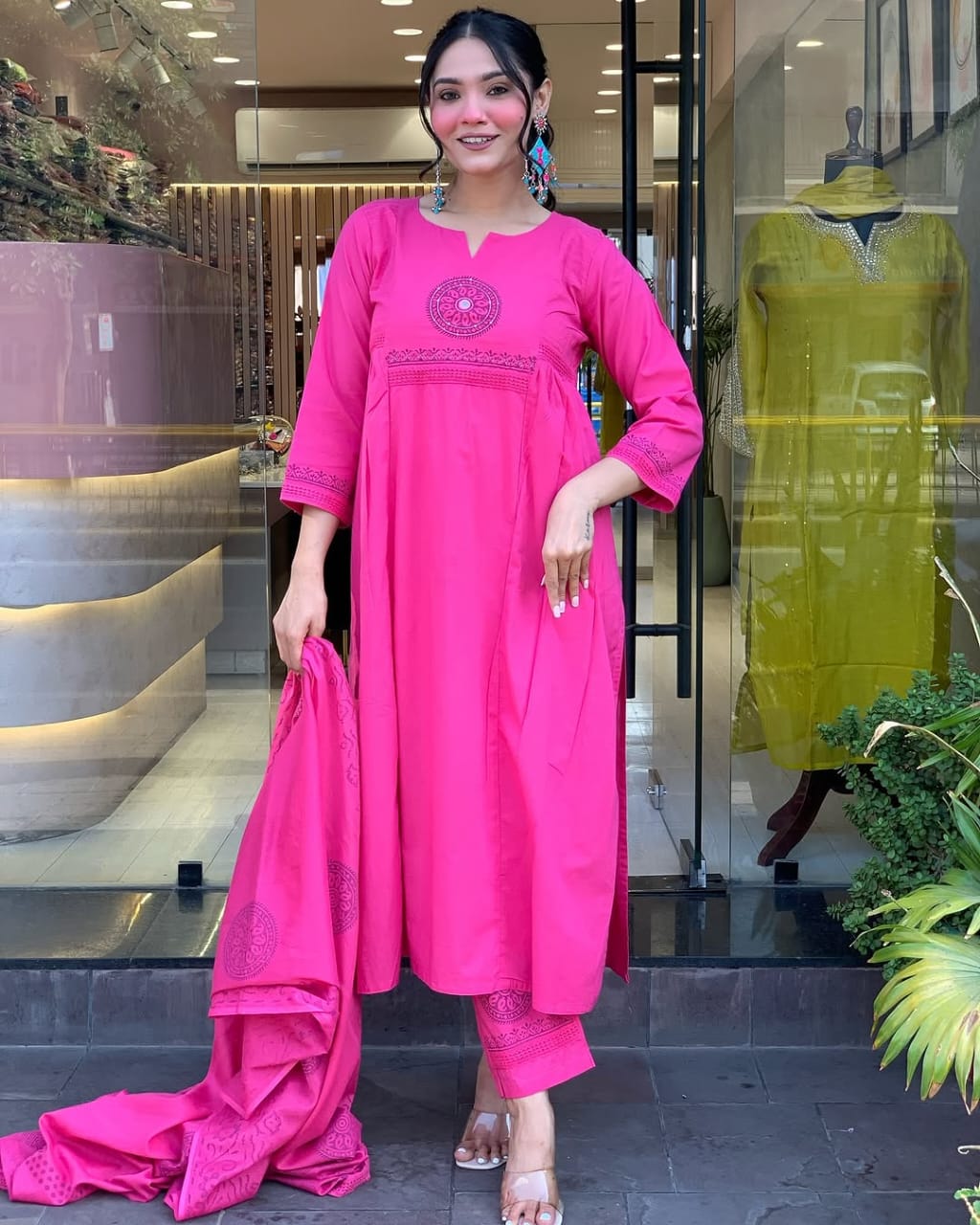 Product Name: Cotton Hand Block Print Kurta Pant Set with Dupatta