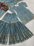 *Plazzo Fabrics* :chinon silk Heavy Embroidery Work With Fancy Borders Less Work Fully Flair.
