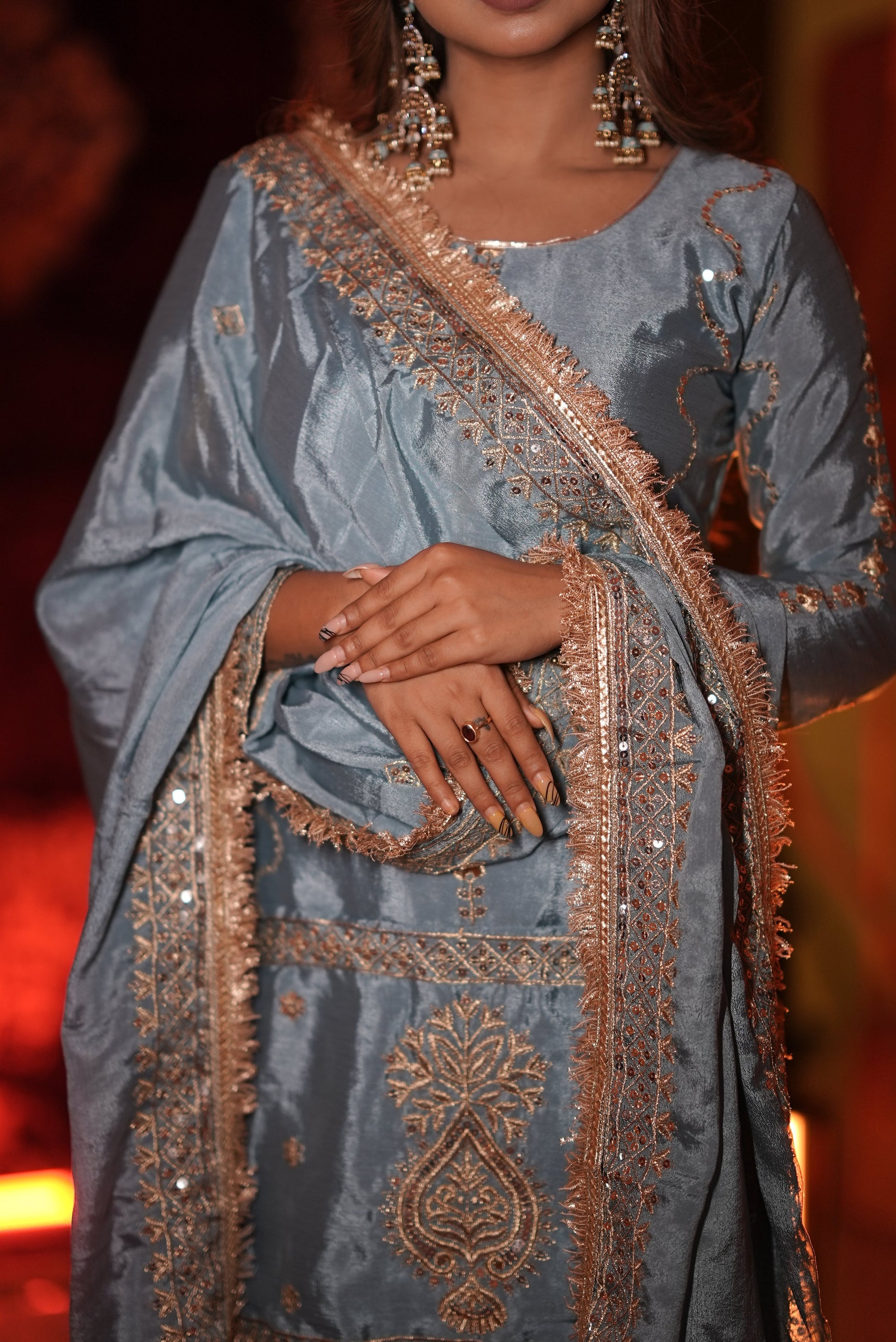 π*Top Fabric* :- chinon Silk With Heavy Embroidery Work With Fancy Borders Less Work Sleeve With Fancy Latkan Dori.