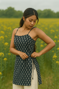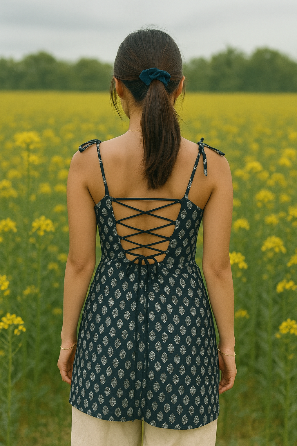 [7:34 pm, 10/7/2025] Sona Dey: β¨ Chic sleeveless design β Shoulder par stylish knot-tie straps jo adjustable hain, perfect fit ke liye.