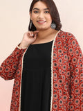 Plus Size Geometric Printed Cotton Anarkali Kurta With Jacket