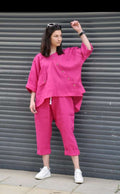 Premium Fuchsia Linen Pants Outfit Wide Pants & Shirt Tunic Top 2 Piece Set for Women