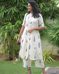 Premium White Floral Fine Cotton Kurta Palazzo Set
