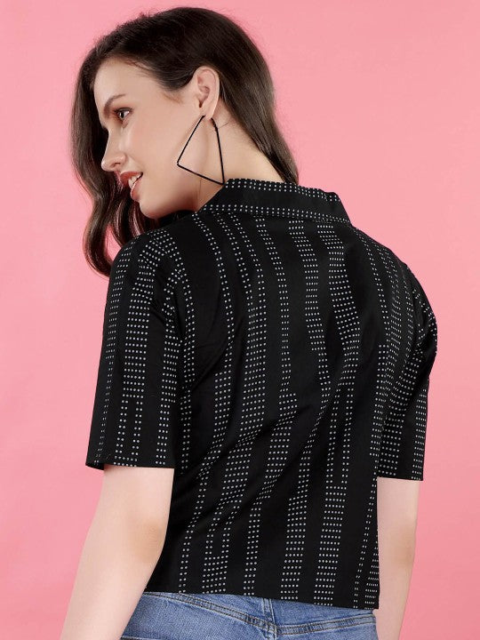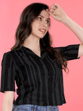 Product Name: Striped Puff Sleeve Rayon Top – Black