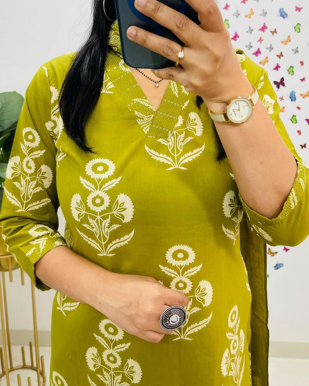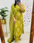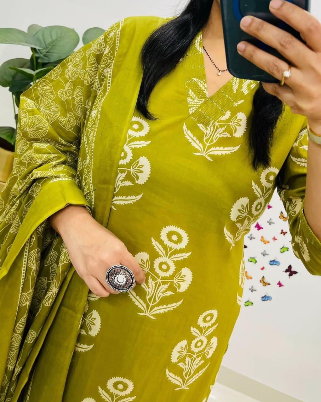 Royal Green Floral Kurta Pant and Dupatta Set