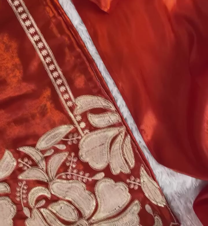 Enhance your ethnic wardrobe with this elegant rust orange designer kurta sharara set, specially crafted for weddings, festive occasions, and parties.