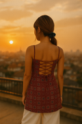 • Back design: Stunning lace-up detail with criss-cross strings, adding a trendy and playful touch.