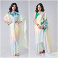 Trending Multicolor Peacock Free Hand Kaftan Style Ready To Wear Saree