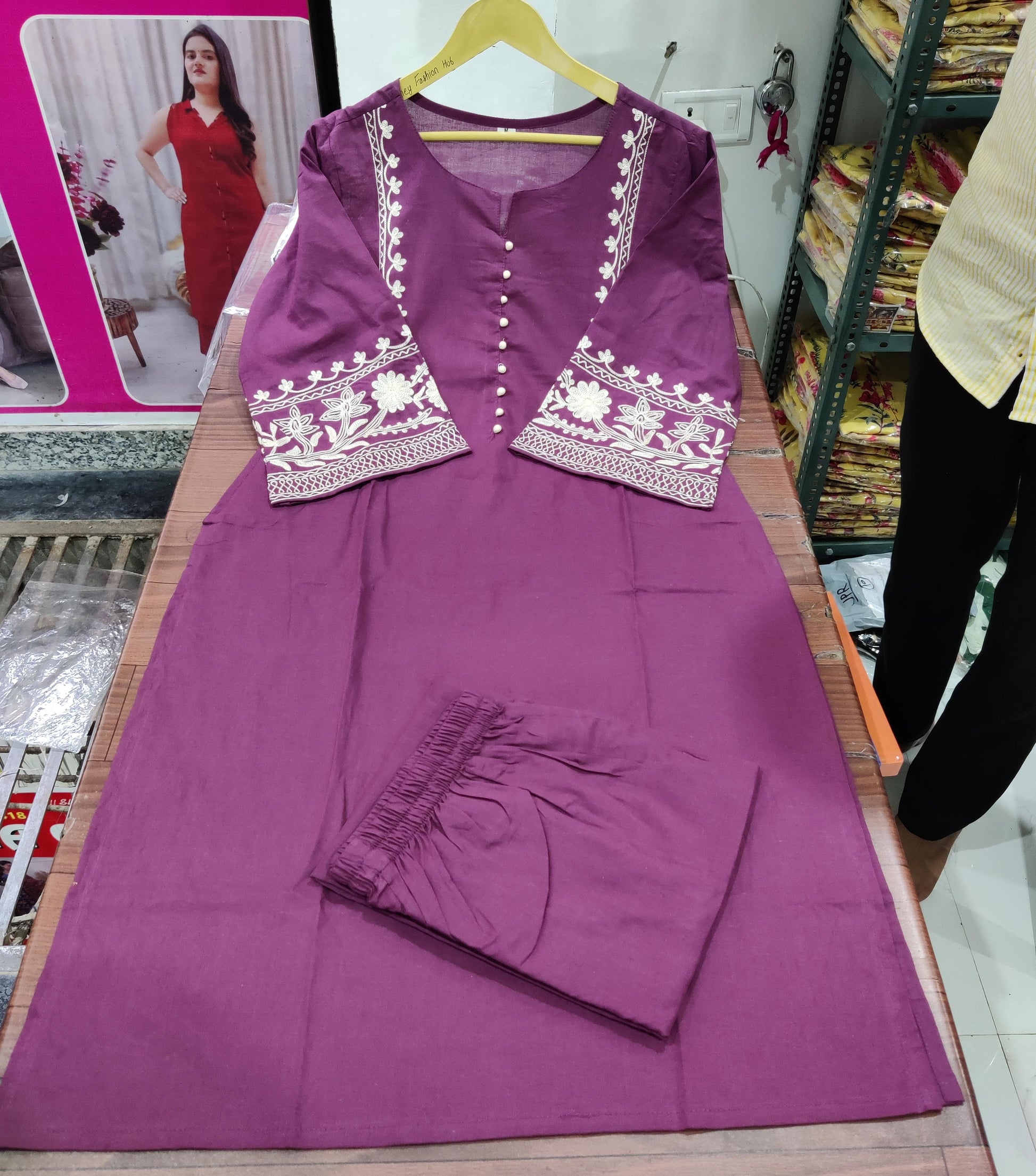 Women Cotton Wine Pakistani Kurta Palazzo set
