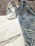 Women Katha Cotton Blue Kurta Pant and Dupatta set