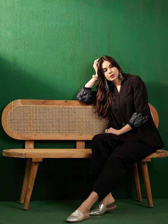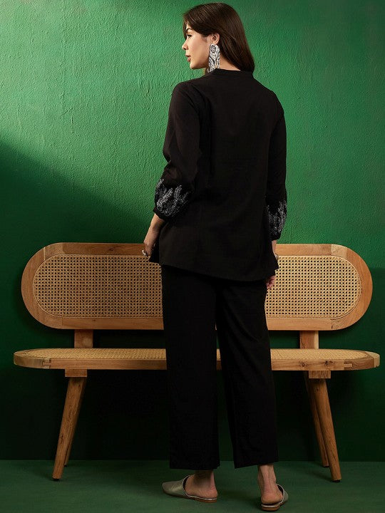 Top: Embroidered, V-neck, 3/4 bell sleeves, button closure