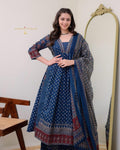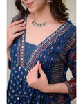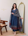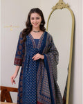Women's Cotton Printed A Line Premium Kurti with Pant and Dupatta Set