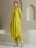 Yellow Embroidered Cotton Kurta & Pant Set with Dupatta